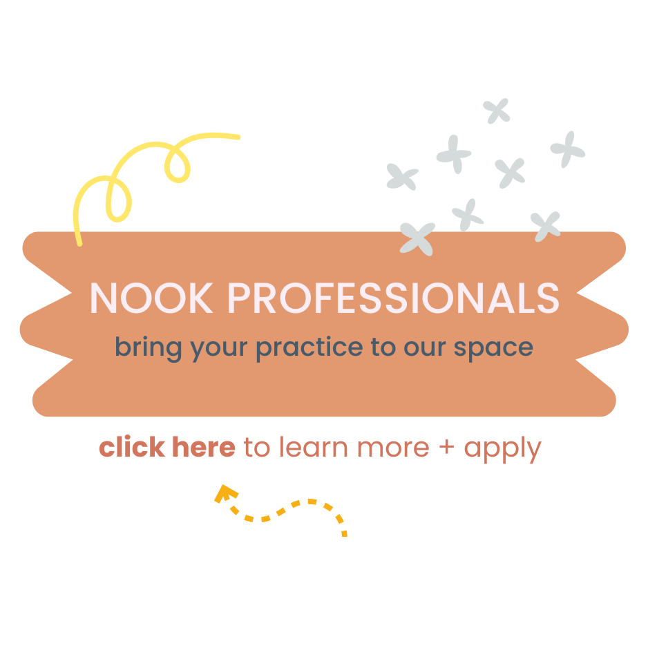 Every corner of our space was designed with intention, because The Nook was created by a mom of three and pediatric occupational therapist who knows the magic is in every nook and cranny.